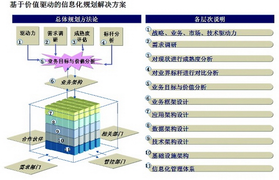 为运营商、政企客户提供全套的企业信息化规划与咨询,包含IT战略规划、业务架构设计、IT基础设施架构设计、IT流程规划、系统集成方案设计(EAI集 成方案设计)、容灾规划、定制系统技术规范书、可行性研究报告、企业信息化3年发展滚动规划、针对某个系统或某类业务的专题规划、课题研究,以及企业信息 SOA架构设计、云化方案、IT系统性能优化等服务。