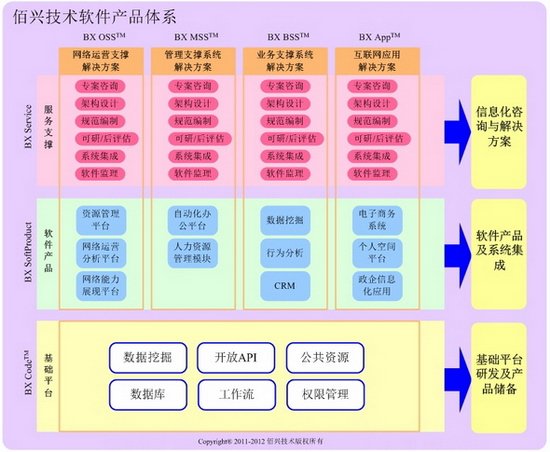 佰兴技术拥有较为完善的软件产品开发体系,具备自主研发的基础软件平台,在技术软件平台上灵活构建面向运营商的或互联网的各类软件服务或增值应用。